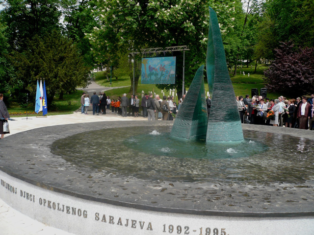 Am 9 Mai, der Europatag in Bosnien-Herzegowina, wurde in einer beeindruckenden Zeremonie ein Denkmal für die im Balkankrieg getöteten über 1000 Kinder enthüllt. Bewegende Szenen spielten sich ab, als die Mütter und Väter die Namen ihrer Kinder wiederfanden. Direkt im Abschluss daran wurde vor der römisch-katholischen Kathedrale von Sarajevo das Symbol „Engel der Kulturen“, ein Rad aus Stahl, das die drei Symbole des Judentums, Christentums und des Islam in sich vereinigt, aufgestellt. Der Oberbürgermeister von Sarajevo Prof. Dr. Alija Behmen und sein Stellvertreter sowie die Vertreter der Religionsgemeinschaften der Stadt bedankten sich, dass die Abraham-Karawane auf ihrem Weg durch die drei Kulturhauptstädte Europas 2010 auch nach Sarajevo gekommen sei. Behmen fand es besonders beindruckend, das genau an diesem denkwürdigen Tag dieses Symbol der Gemeinsamkeiten und des Dialogs zwischen den Religionen in seiner Stadt ist.