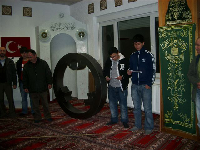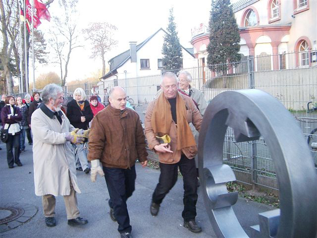 Zum Auftakt der local heroes Woche Marl, während der die Stadt im Zentrum der Aktionen der Kulturhauptstadt 2010 steht, begleiten wir mit der rollenden Skulptur des Engels der Kulturen die Nacht der offenen Gotteshäuser. Wir besuchen gemeinsam mit Marler Bürgerinnen und Bürgern 4 Moscheen, 6 Kirchen und das Dietrich-Bonhoeffer-Denkmal am Rathaus. Zum Abschluß der Aktion verlegen wir an der Ecke Brassertstraße/ Martin-Lutherstraße die Bodenintarsie, die in Wuppertal am Berufskolleg am Haspel entstanden ist und von einer Delegation dieser Schule feierlich überreicht wird.