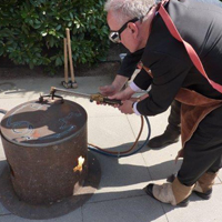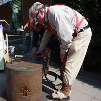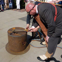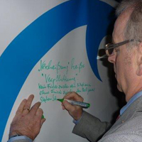Gemeinsam mit der Evangelisch-Lutherischen Gemeinde Blankenese verlegen wir die Bodenintarsie Engel der Kulturen auf dem Platz zwischen Kirche und Gemeindehaus. Die Veranstaltung findet statt im Rahmen des Evangelischen Kirchentags und den damit verbundenen Aktivitäten der Arbeitsgruppe Weltethos der Gemeinde, wie u.a. dem Zelt Abrahams, das schon am Vortag eröffnet wurde. Die Intarsie ist entstanden am 26. April in Ahrensburg, hergestellt wird das Zeichen für die nächste Station, in diesem Fall Essen-Kray.