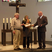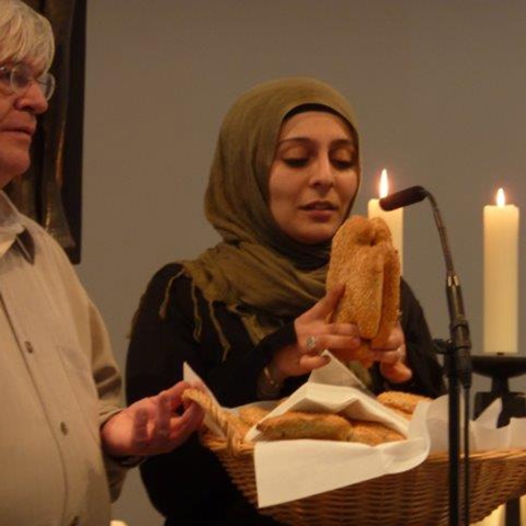 Im Anschluß an die Kunstaktion findet in der Kirche ein interreligiöses Brotbrechen und gemeinsamer Gottesdienst von Juden, Muslimen und Christen statt.