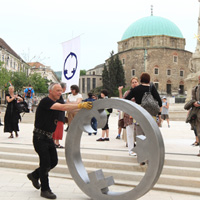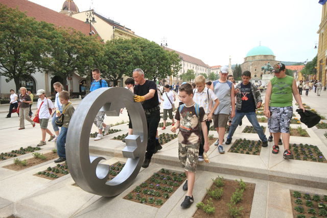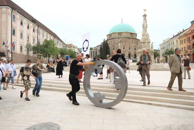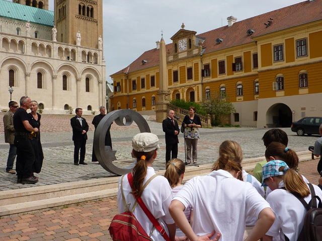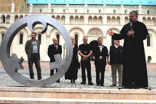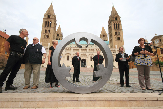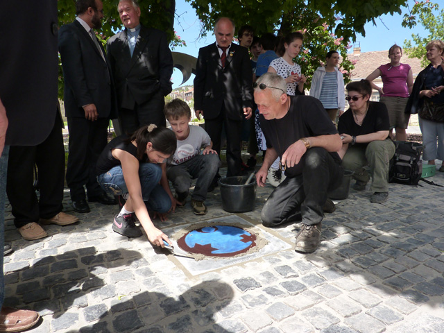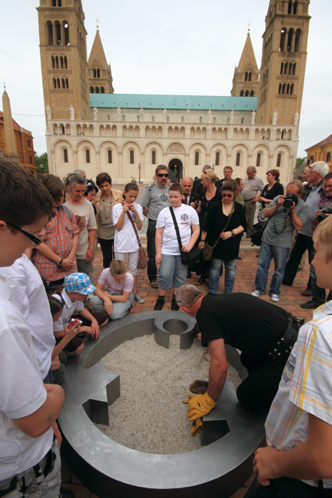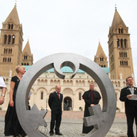 Am Donnerstag, 6. Mai, wurde auf dem gerade fertig gestellten Agoston-Platz in der Kulturhauptstadt Pecs in Ungarn, eine Bodenintarsie installiert, um eine dauerhafte Erinnerung zu haben an die Verbindung der Kulturhauptstädte Europas und das Gemeinsame der Religionen.