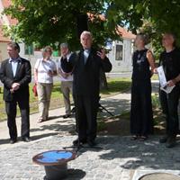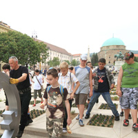Bei diesem Akt war als Stellvertreter des Oberbürgermeisters, Ernö Staub, sowie der röm.-kath. Bischof Michael Mayer, der Vorsitzende der Moslemischen Gemeinde, Mohammed Eisa Shubail, der Vorsitzende der jüdischen Gemeinde, Tamas Goldmann, die Mitglieder der Abraham-Karawane und zahlreiche Pecer Bürgerinnen und Bürger, vor allem viele Kinder, gekommen .Stadtvertreter und Religionsvertreter freuten sich sehr über diese Aktion der Verbindung.