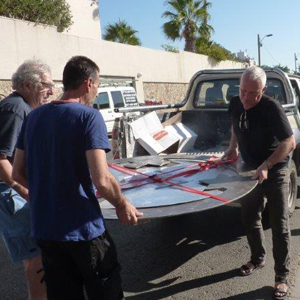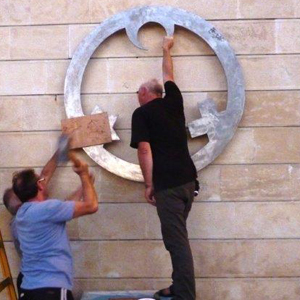 Installation eines Wandobjekts Engel der Kulturen in einem Durchmesser von 1,50 Metern an der Außenfassade des Arab-Jewish-Community-Centers in Tel Aviv-Jaffa, Zentrum zur Co-Edukation von Jugendlichen mit Schwerpunkt auf gemeinsames künstlerisches Arbeiten