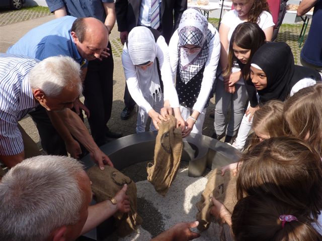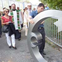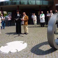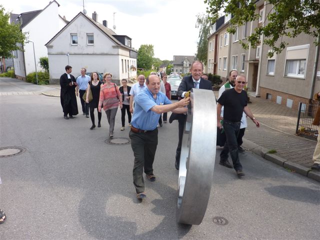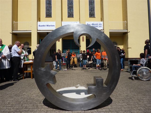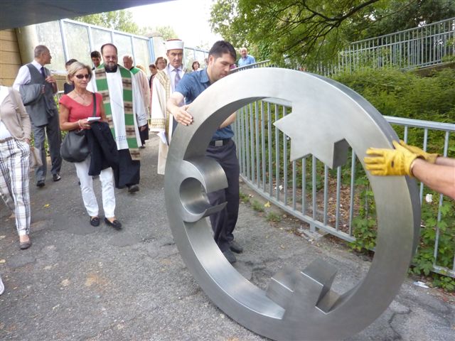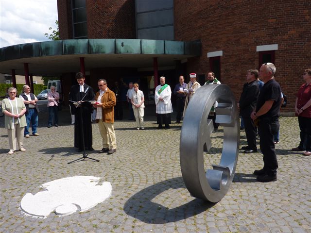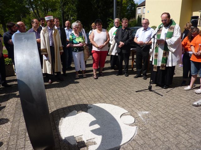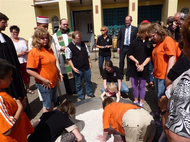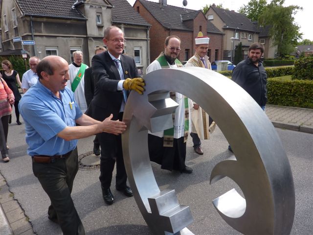 Die Skulptur des Engels der Kulturen wird in Begleitung von Vertretern der verschiedenen Religionsgemeinschaften und Bürgermeister Ulrich Roland, Schirmherr der Veranstaltung, durch die Stadt bewegt, startend an der evangelischen Pauluskirche zur katholischen St. Marienkirche, beide in Brauck, über die DITIB-Moschee bis zum Martin-Luther-Forum. Dort wird eine Bodenintarsie verlegt und eine weitere ausgebrannt, die bestimmt ist für die Friedensstadt Augsburg, wo sie am 7. August zum Hohen Fest des Friedens auf dem Martin-Luther-Platz eingelassen wird.