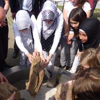 Kunstaktion mit dem Engel der Kulturen in der Stadt Gladbeck