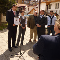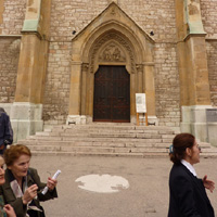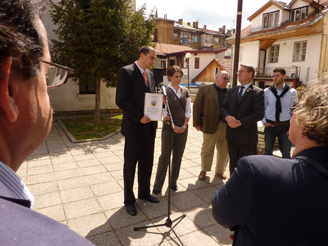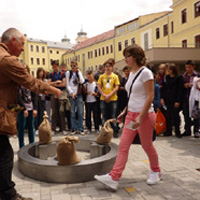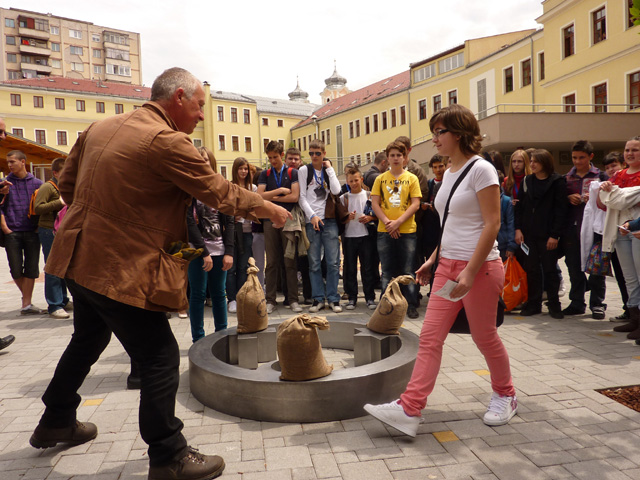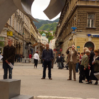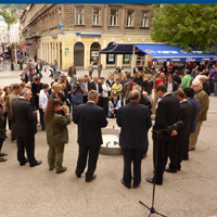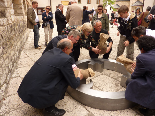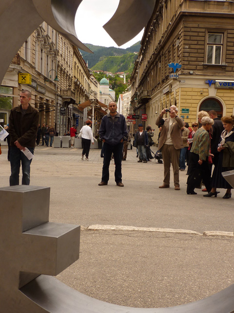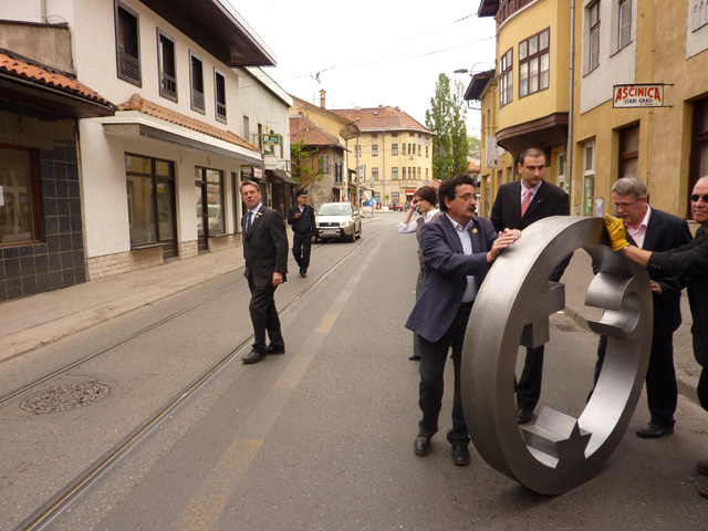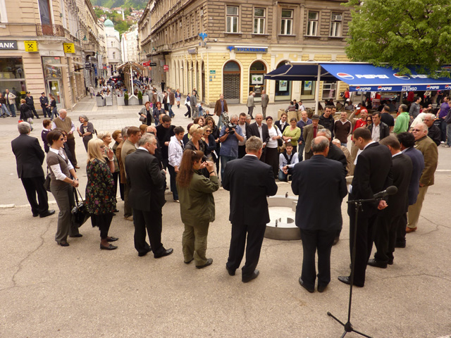 Die Karawane war nach einem mehrtägigem Aufenthalt in Pécs/Ungarn, der 2. Kulturhauptstadt, nach Tuzla in Bosnien weiter gefahren. Dort wurde auf dem ältesten Platz der Stadt im Beisein einer Abordnung der Stadtverwaltung und aller Religionsvertreter ein Sandabdruck gelegt.