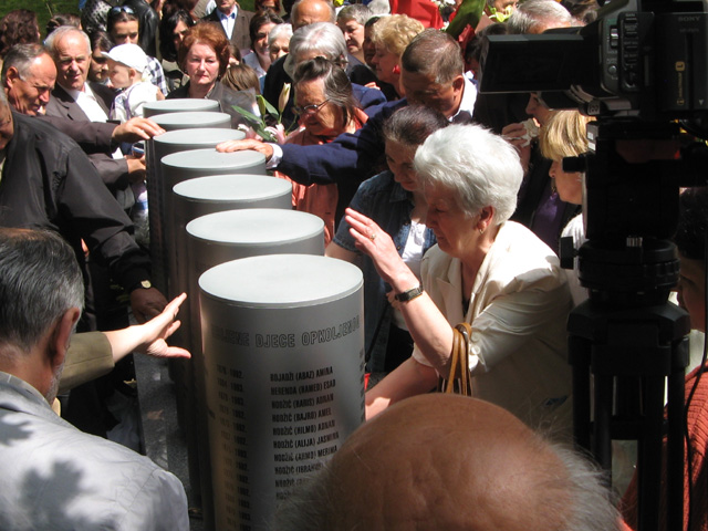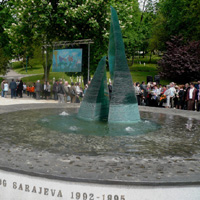 Am 9 Mai, der Europatag in Bosnien-Herzegowina, wurde in einer beeindruckenden Zeremonie ein Denkmal für die im Balkankrieg getöteten über 1000 Kinder enthüllt. Bewegende Szenen spielten sich ab, als die Mütter und Väter die Namen ihrer Kinder wiederfanden. Direkt im Abschluss daran wurde vor der römisch-katholischen Kathedrale von Sarajevo das Symbol „Engel der Kulturen“, ein Rad aus Stahl, das die drei Symbole des Judentums, Christentums und des Islam in sich vereinigt, aufgestellt. Der Oberbürgermeister von Sarajevo Prof. Dr. Alija Behmen und sein Stellvertreter sowie die Vertreter der Religionsgemeinschaften der Stadt bedankten sich, dass die Abraham-Karawane auf ihrem Weg durch die drei Kulturhauptstädte Europas 2010 auch nach Sarajevo gekommen sei. Behmen fand es besonders beindruckend, das genau an diesem denkwürdigen Tag dieses Symbol der Gemeinsamkeiten und des Dialogs zwischen den Religionen in seiner Stadt ist.