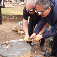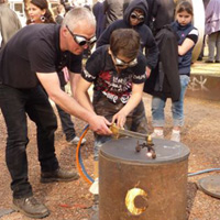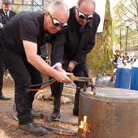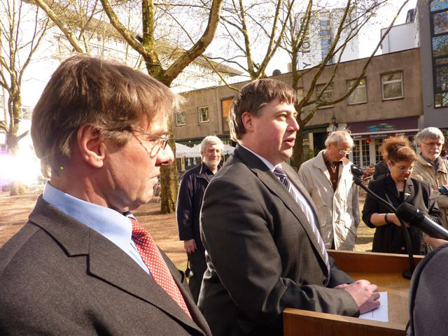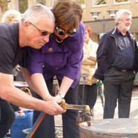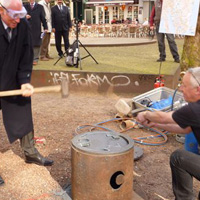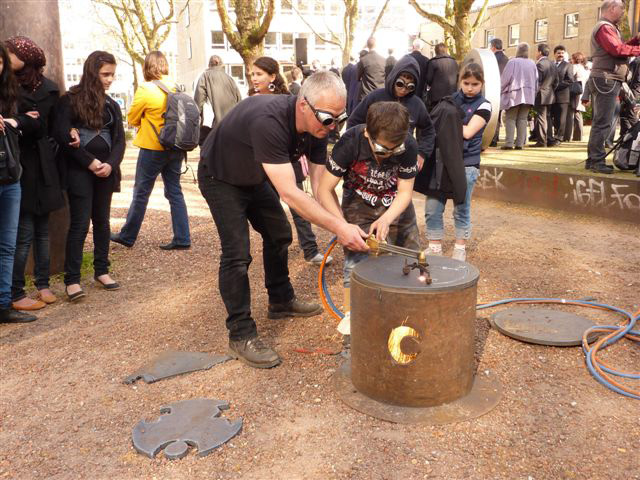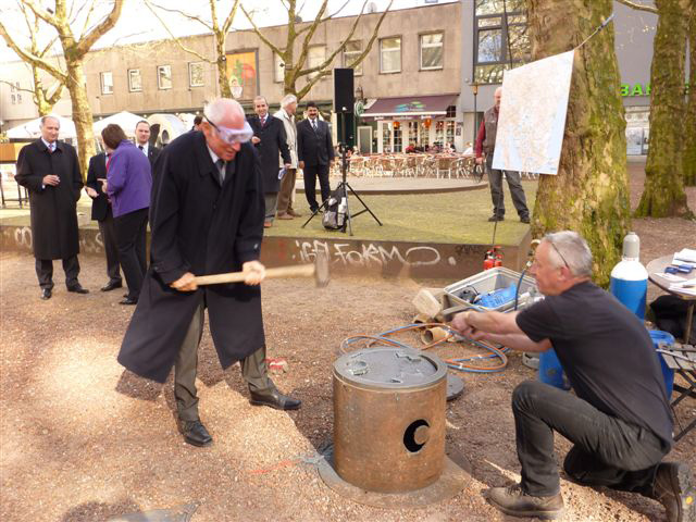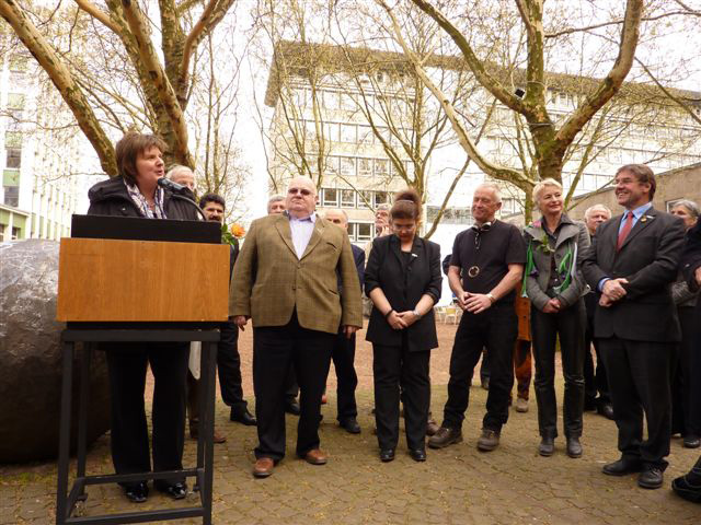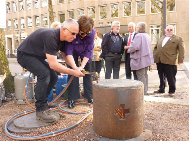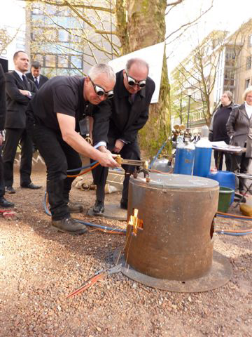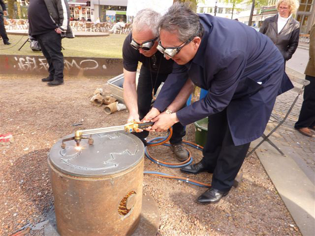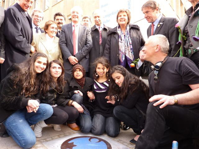 Verlegen einer Bodenintarsie und Ausbrennen des Zeichens für die Partner-Kulturhauptstädte Pécs und Istanbul. Dabei wirken tatkräftig mit die Präsidentin des Landtags von Nordhrein-Westfalen, Regina van Dinther, der türkische Botschafter Ali Ahmet Acet und der Essener Oberbürgermeisters Reinhard Pass sowie Vertreter der jüdischen, muslimischen und christlichen Gemeinden. Gemeinsam verabschieden im Anschluß die Anwesenden die Abraham-Karawane Engel der Kulturen.
