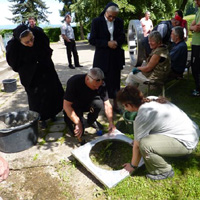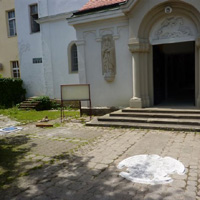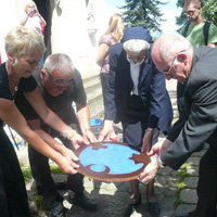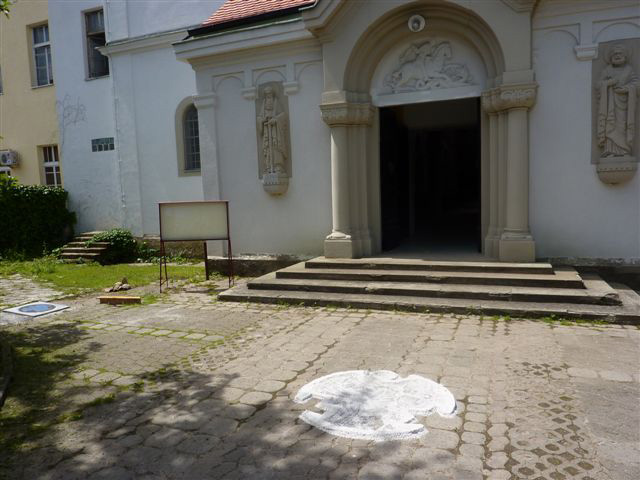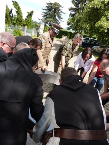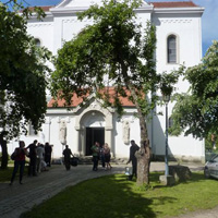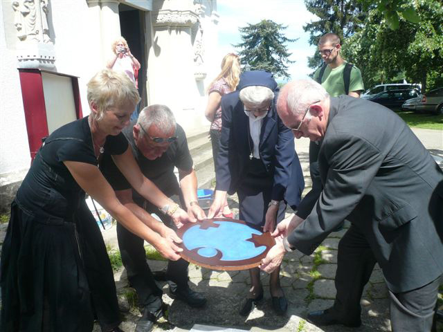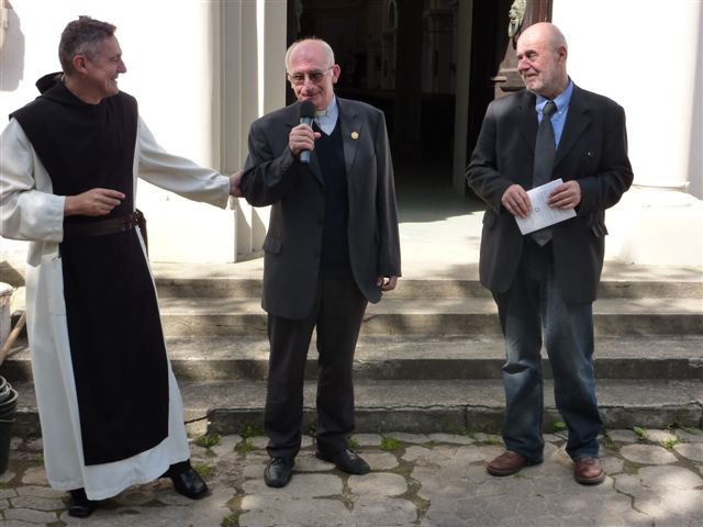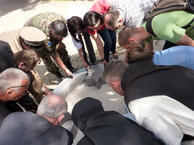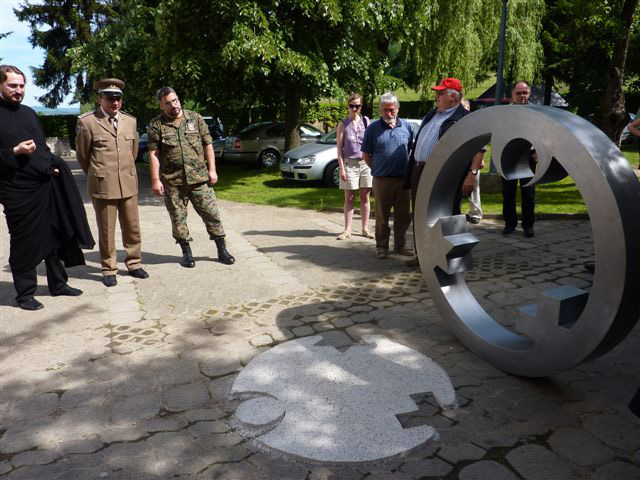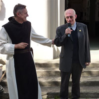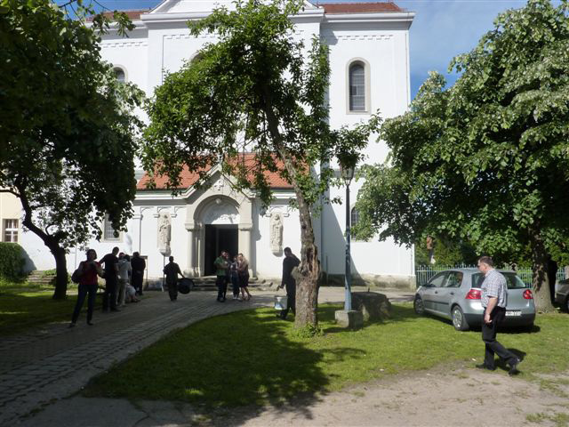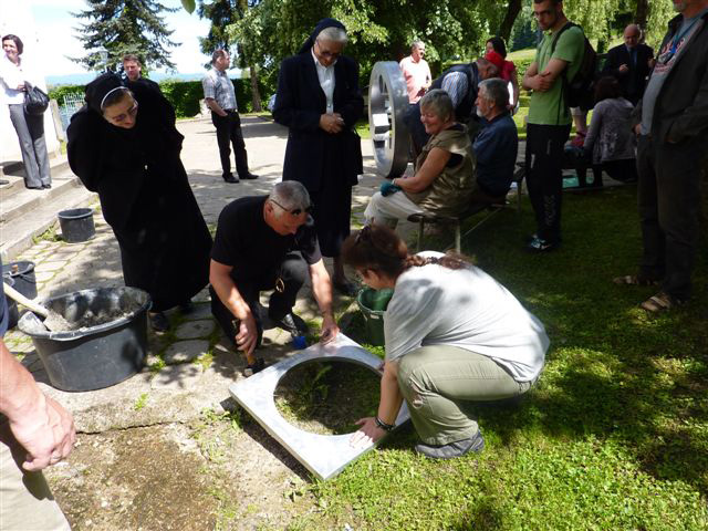 Vor dem Eingang der größten Kirche Bosniens waren der Chef des Klosters, Pater Zvonko, Dr. Hans-Jürgen Möller (Leiter des deutschen Wirtschaftsbüros in Banja Luka) sowie Schülerinnen und Schüler der Katholischen Europaschule anwesend. Das Kloster Maria Stern gehörte zu den wenigen katholischen Kirchen in der Republik Srpska, die während des Bosnien-Krieges nicht zerstört wurden. Prof. Dr. Karlo Visaticki, der ebenfalls dort anwesend war, ist Pfarrer einer kleinen Gemeinde in Banja Luka, die ihre Gottesdienste im Wohnzimmer des Pfarrhauses feiert und viel soziale Arbeit leistet. Zugunsten dieser sozialen Arbeit verzichtete Pfarrer Visaticki gegen den Willen seines Bischofs auf den Bau einer Pfarrkirche am Ort.