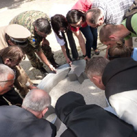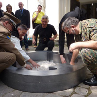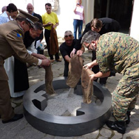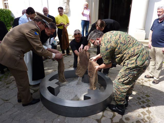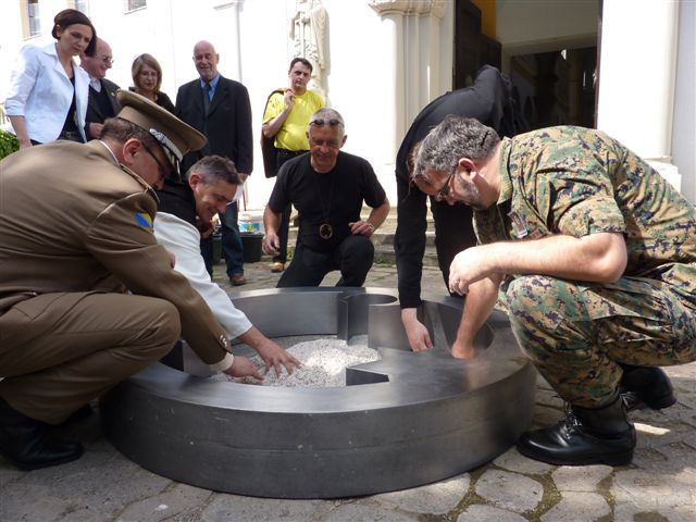 Auf dem Rückweg von Istanbul nach Essen machte die Abraham-Karawane auch Station in dem politisch aufgeladenen Banja Luka, der „Hauptstadt“ der „serbischen Republik“ innerhalb der Föderation Bosnien & Herzegovina. Am Trappisten-Kloster Maria Stern wurde als bleibende Erinnerung eine Bodenintarsie gelegt. Als Vertreter der drei dort vorherrschenden Religionen kamen die jeweiligen Militärgeistlichen der bosnischen Armee. Friedlich vereint füllten der katholische, der orthodoxe und der muslimische Geistliche für Banja Luka Sand in das Innere der Skulptur.