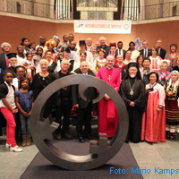 Während des ökumenischen Gottesdienstes in der Erlöserkirche zum bundesweiten Auftakt der Interkulturellen Woche in Essen wird das Kunstprojekt Engel der Kulturen vorgestellt.