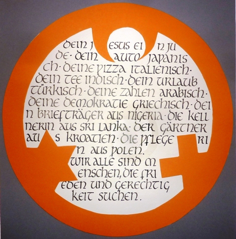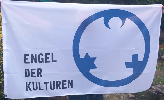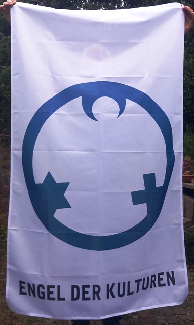 NEU! Fahnentuch mit dem Engel der Kulturen bedruckt quer (2 Ösen seitlich) oder hoch (2 Ösen oben) Größe: 150 x 90 cm je 60,-- Euro Bei einem Versand innerhalb Deutschlands kommt eine Versandkostenpauschale von 7,00 € hinzu. |