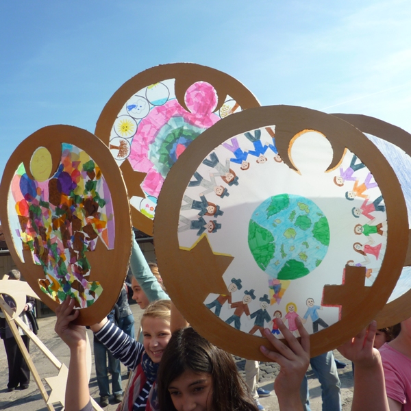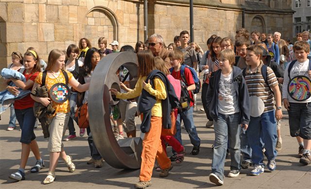 Grundsätzlich ist es wünschenswert, daß sich junge Menschen/ Schülerinnen und Schüler an den Kunstaktionen mit dem Engel der Kulturen in ihrer jeweiligen Stadt beteiligen, auch wenn die Bodenintarsie im öffentlichen Raum installiert wird.