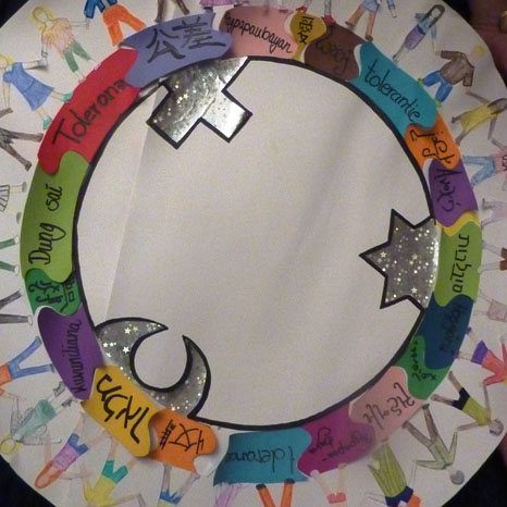 Mit dem Bild Engel der Kulturen kann zuvor in vielfältig variierender Weise zur Vorbereitung der Teilnahme an der Aktion mit Kindern und Jugendlichen aller Altersstufen der Themenkreis "Multikulturelles, multireligiöses Zusammenleben in gegenseitiger Toleranz, Achtung und Bereicherung" fächerübergreifend erarbeitet werden. Die SchülerInnen können eigene künstlerische Umsetzungen (Bsp. siehe unten) des Zeichens erarbeiten und Beiträge (Musik, Theater, Wort etc.) vorbereiten, die am Aktionstag gezeigt und aufgeführt werden.