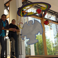 Didaktisches Material und Beispiele kreativer UmsetzungenPräsentation Verlegung einer Bodenintarsie und Aktion mit der rollenden Skulptur
